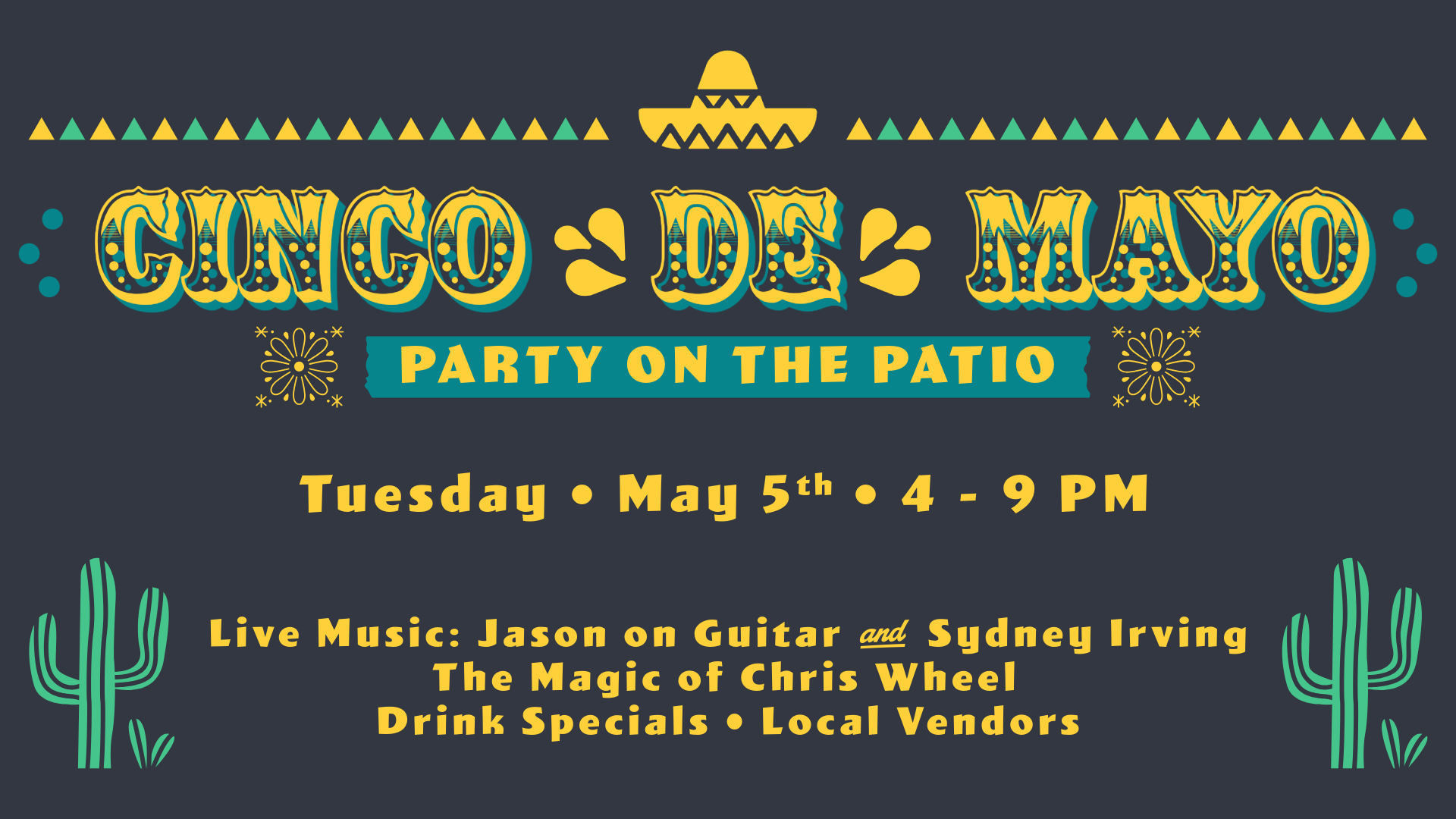Join us on Tuesday, May 5th, 4 to 9 PM for an evening full of fun, flavor, and fiesta vibes: