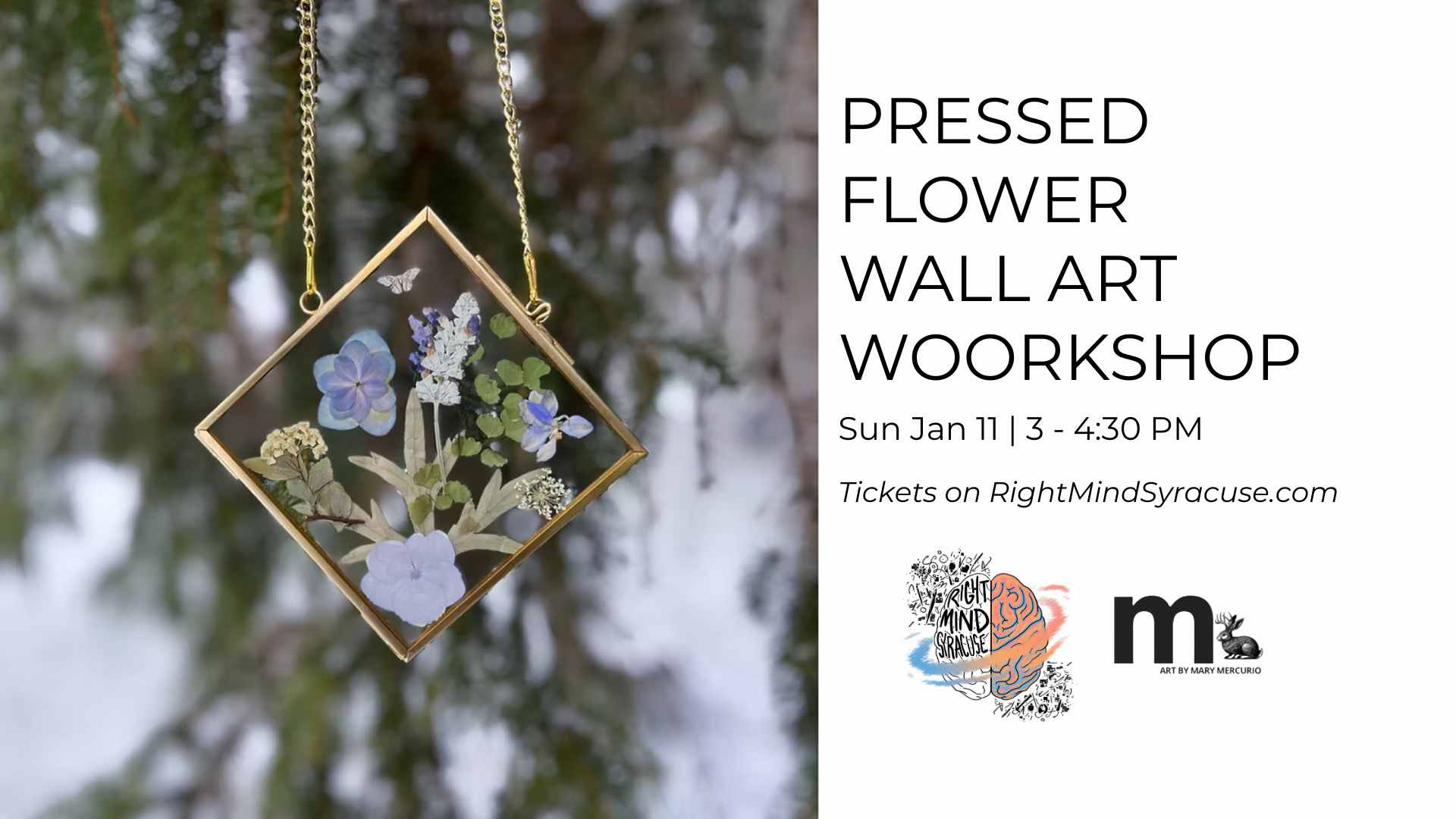 Join us for a Pressed Flower Art Workshop at Manlius Cantina! During this workshop, your host, Mary of Sugar Moon Artistry, will guide you as you arrange pressed flowers and more into a work of art! She'll provide an array of pressed flowers and moths for you to choose from! This workshop will feature winter […] |